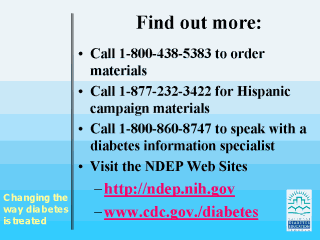 the NDEP web site. You may also order NDEP materials through our two toll-free numbers.