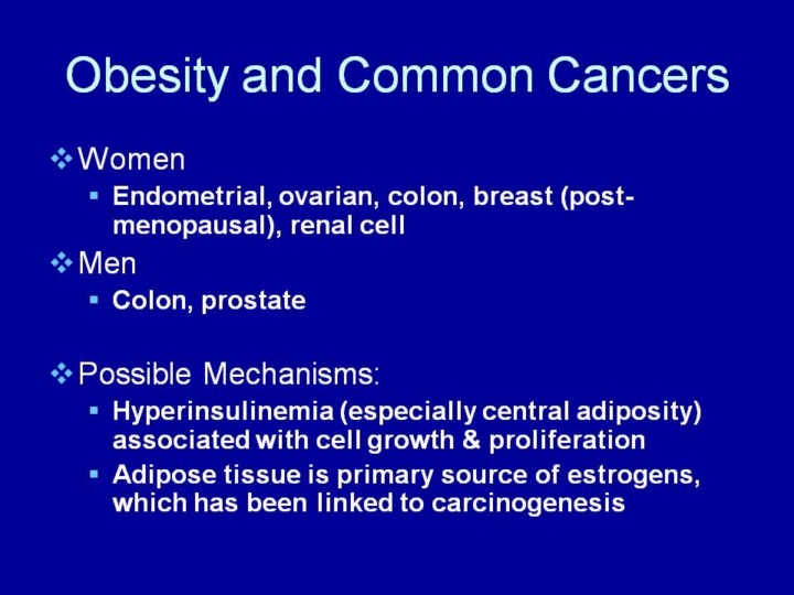 If obesity is a contributing factor for many cancers, programs that target obesity prevention are needed to address this issue. Bariatric surgery may provide alternative last option solution for people who cannot lose weight through traditional means. |