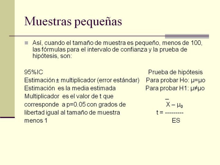 Las fórmulas son las mismas pero el valor de p tiene que ser leído de las tablas de la distribución t