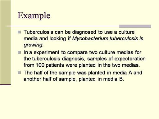 In this study, the results of an individual are two observations that are matched to one another. Each result can be + or - to the tuberculosis bacillus.