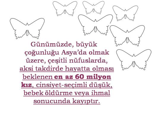 Gerçekten de günümüzde, büyük çoğunluğu Asya’da olmak üzere, çeşitli nüfuslarda, aksi takdirde hayatta olması beklenen en az 60 milyon kız, cinsiyet-seçimli düşük, bebek öldürme veya ihmal sonucunda kayıptır.