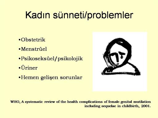 En önemli komplikasyonları erken dönemde kanama ve enfeksiyon ile uzun dönemdeki Obstetrik, Menstrüel  ,Psikoseksüel/psikolojikve üriner sorunlardır.