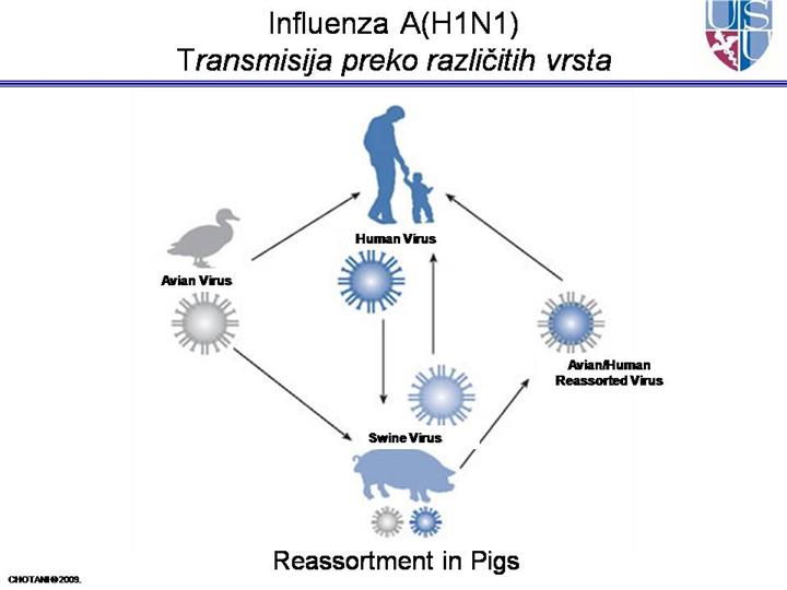 Reasortiranje znači izmjenu DNA između virusa unutar stanice domaćina. Dva ili više virusa različitih tipova (ali je uobičajeno istih tipova) inficiraju jednu stanicu i udružuju genetski materijal kreirajući brojne genetski različite progene viruse. To predstavlja vrstu genetske rekombinacije. Reasortiranje može pokrenuti virusni šift u istim uslovima. |