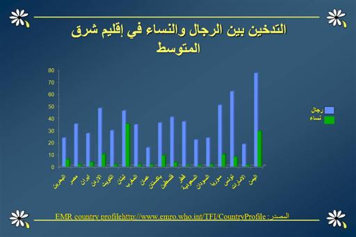 حسب بيانات منظمة الصحة العالمية التدخين اكثر شيوعاً بين الرجال مقارنة بالنساء في إقليم شرق المتوسط