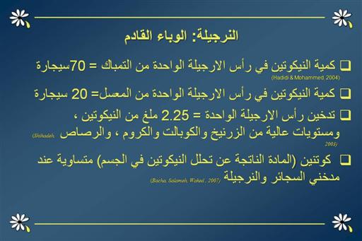 بالاضافة الى المواد الضارة الناتجة عن التبغ فإن احتراق الفحم أيضاً أثناء تدخين النرجيلة ينشأ عنه سموم إضافية ويكون تأثيرها بالغاً على غير المدخنين تكمن الخطورة أيضاً عند اضافة النكهات حيث تجعلها أكثر جاذبية ويزيد من اقبال الناس عليها |