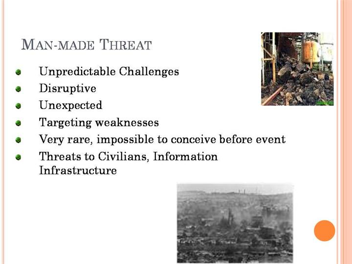 We need to focus on each of the components of man-made threats. The Supercourse model has done this as evidenced with Natural, Asymmetric attacks. Supercourse has significant number of lectures specific disaster focus. Shortly after the building of the Supercourse we realized that it had exceptional potential in the area of disasters. We had the idea if a disaster were to occur we could rapidly develop a network of people from out network interested in helping and to develop a Just-in-Time (JIT) lecture. This was established by: