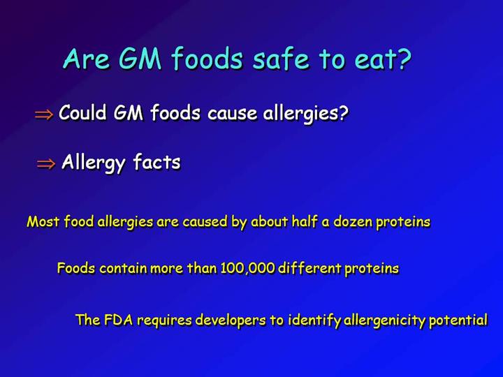 be an allergen and even if the gene came from a plant, like a peanut plant,