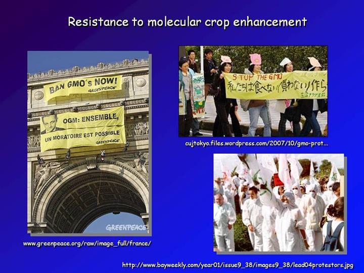 Will we be able to use the tools of modern molecular science to help crop plants adapt to a changing climate? Will we be able to use them to accelerate the development of new crop plants? Many well-meaning people around the world still believe that GM crops are dangerous, their beliefs fueled by misinformation – even disinformation – on the Internet, from public interest groups and the communications media. Although some European countries, particularly Spain, are growing GM crops, much of Europe, Japan – and most of Africa – remain adamantly opposed to crops improved using molecular techniques. These persistent perceptions have resulted in restrictive and costly regulation of such crops – even banning of both their use and even to their import as food aid.
