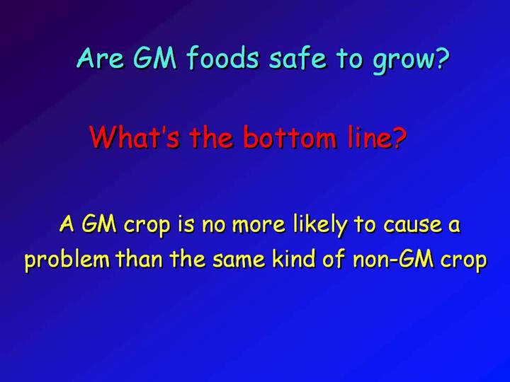 Moreover, even after more than a decade of large-scale cultivation, there is no evidence that crops modified by GM methods pose new problems for either crop diversity or biodiversity. Indeed, they offer the possibility of increased yields with lower uses of inputs, such as pesticides. As we will learn in Part III of this lecture, the ability to use molecular techniques to modify crop plants will be an essential tool in adapting crop plants to a changing climate.