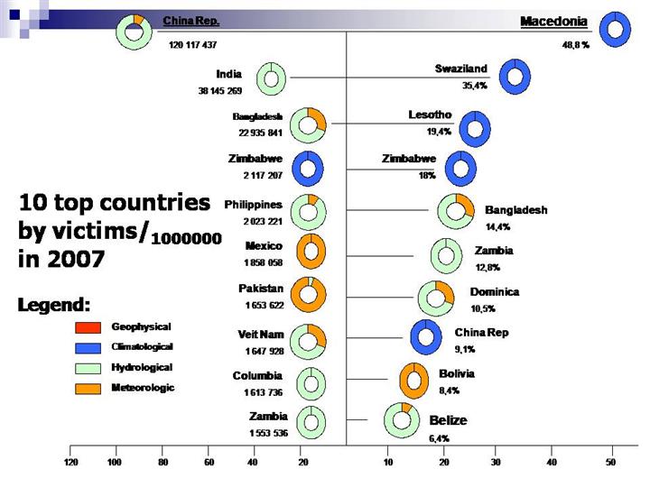 Data from EM-DAT database run by Centre for Research on the Epidemiology of Disasters (CRED) provides valuable and almost unique tools for analysis of disaster occurrence and risk assessment, because of very limited number of papers published in journals and limited research capacities. The year 2007 was very specific in terms of disasters occurrence in Europe. Namely, in July 2007 Europe was affected by extra-tropical cyclone Kyril. The same year, the Republic of Macedonia was affected twice by natural disasters – by wild fires and by heat waves, becoming the most affected country in the world in terms of percentage of affected people. In that year 48.8% of Macedonian population was affected by disasters and one death case was registered |