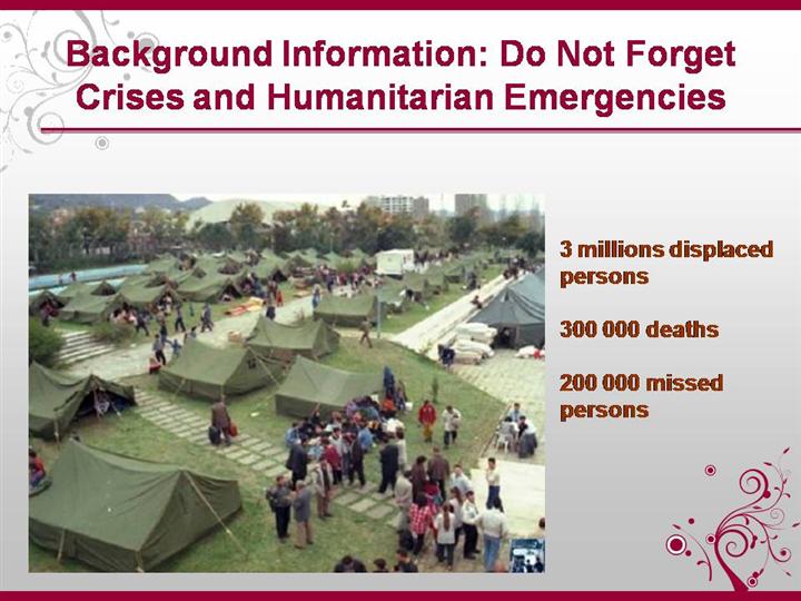 Since the 1990s, the European Region has experienced a number of violent conflicts with vast political, social and human consequences. Fighting in the Balkan countries in 1991-2002 is estimated to have killed more than 125 000 people and displaced up to 3 million. |