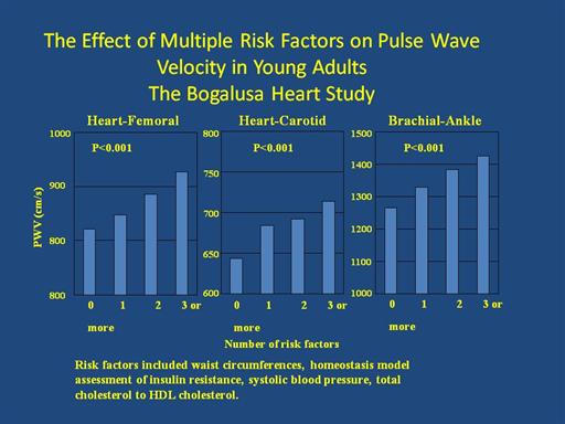 Increased pulse wave velocity, evidence of vascular stiffness, with increasing number of risk factors