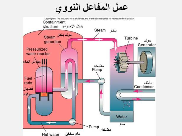 Just as many conventional thermal power stations generate electricity by harnessing the thermal energy released from burning fossil fuels, nuclear power plants convert the energy released from the nucleus of an atom, typically via nuclear fission. When a relatively large fissile atomic nucleus (usually uranium-235 or plutonium-239) absorbs a neutron, a fission of the atom often results. Fission splits the atom into two or more smaller nuclei with kinetic energy (known as fission products) and also releases gamma radiation and free neutrons. A portion of these neutrons may later be absorbed by other fissile atoms and create more fissions, which release more neutrons, and so on. This nuclear chain reaction can be controlled by using neutron poisons and neutron moderators to change the portion of neutrons that will go on to cause more fissions. Nuclear reactors generally have automatic and manual systems to shut the fission reaction down if unsafe conditions are detected. A cooling system removes heat from the reactor core and transports it to another area of the plant, where the thermal energy can be harnessed to produce electricity or to do other useful work. Typically the hot coolant will be used as a heat source for a boiler, and the pressurized steam from that boiler will power one or more steam turbine driven electrical generators. There are many different reactor designs, utilizing different fuels and coolants and incorporating different control schemes. Some of these designs have been engineered to meet a specific need. Reactors for nuclear submarines and large naval ships, for example, commonly use highly enriched uranium as a fuel. This fuel choice increases the reactor's power density and extends the usable life of the nuclear fuel load, but is more expensive and a greater risk to nuclear proliferation than some of the other nuclear fuels. A number of new designs for nuclear power generation, collectively known as the Generation IV reactors, are the subject of active research and may be used for practical power generation in the future. Many of these new designs specifically attempt to make fission reactors cleaner, safer and/or less of a risk to the proliferation of nuclear weapons. Passively safe plants (such as the ESBWR) are available to be built and other designs that are believed to be nearly fool-proof are being pursued. Fusion reactors, which may be viable in the future, diminish or eliminate many of the risks associated with nuclear fission. |