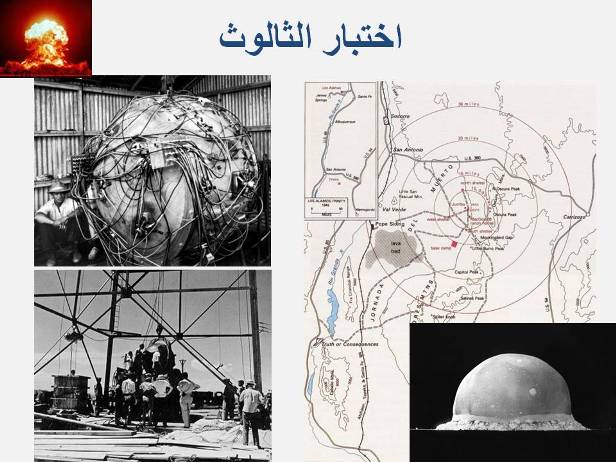 Robert Oppenheimer chose to name this the "Trinity" test, a name inspired by the poems of John Donne.  The site chosen was a remote corner on the Alamagordo Bombing Range known as the "Jornada del Muerto," or "Journey of Death," 210 miles south of Los Alamos.  The elaborate instrumentation surrounding the site was tested with an explosion of a large amount of conventional explosives on May 7.  Preparations continued throughout May and June and were complete by the beginning of July.  Three observation bunkers located 10,000 yards north, west, and south (right) of the firing tower at ground zero would attempt to measure key aspects of the reaction.  Specifically, scientists would try to determine the symmetry of the implosion and the amount of energy released.  Additional measurements would be taken to determine damage estimates, and equipment would record the behavior of the fireball.  The biggest concern was control of the radioactivity the test device would release.  Not entirely content to trust favorable meteorological conditions to carry the radioactivity into the upper atmosphere, the Army stood ready to evacuate the people in surrounding areas.