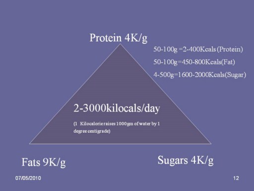 On average we get about One third of our calories from fat One sixth from protein Three sixths (half) from sugars/carbohydrates