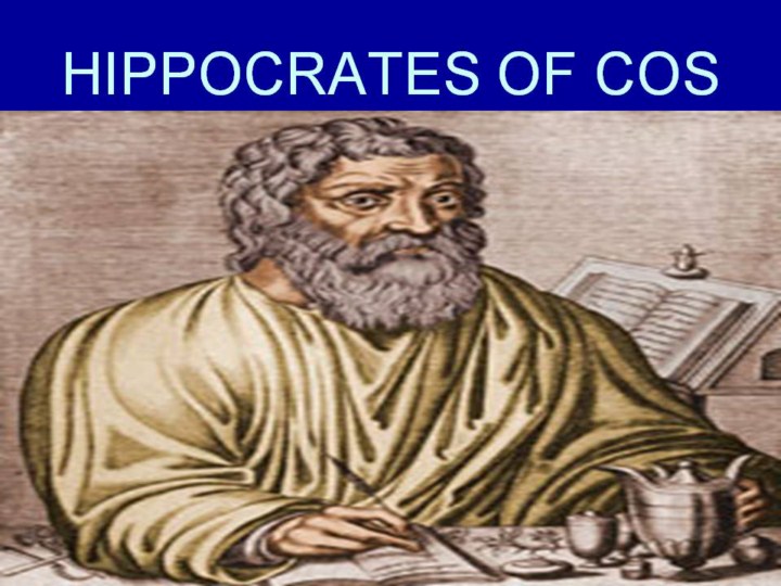 The gentleman-iatros, such as Hippocrates of Cos, would personally treat patients of the upper class. Poorer citizens and some slaves were treated by his assistants, and if the iatros had slaves these might also give some care to their fellow sick slaves. |