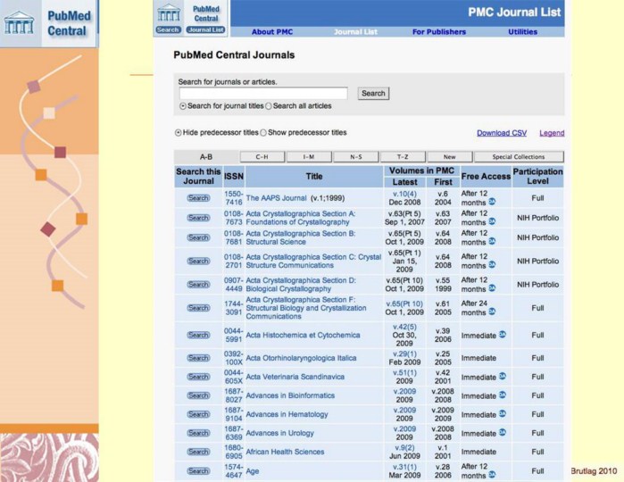 URL links from the slide: http://www.ncbi.nlm.nih.gov/pmc/ http://www.ncbi.nlm.nih.gov/pmc/journals/