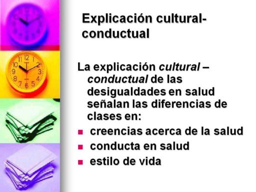 La dieta está influencias por las preferencias culturales y el ingreso disponible; la prevalencia de obesidad es más elevada en grupos de trabajo manuales que en los no manuales, donde la salud es una tema de responsabilidad individual y de libre elección influenciado por actitudes basadas en conocimientos. Las personas con trabajos manuales es más probable que se adapten al fatalismo, tengan pocas metas a corto plazo, bajas expectativas en la vida y actitud propensas a hacia tomar riesgos. |