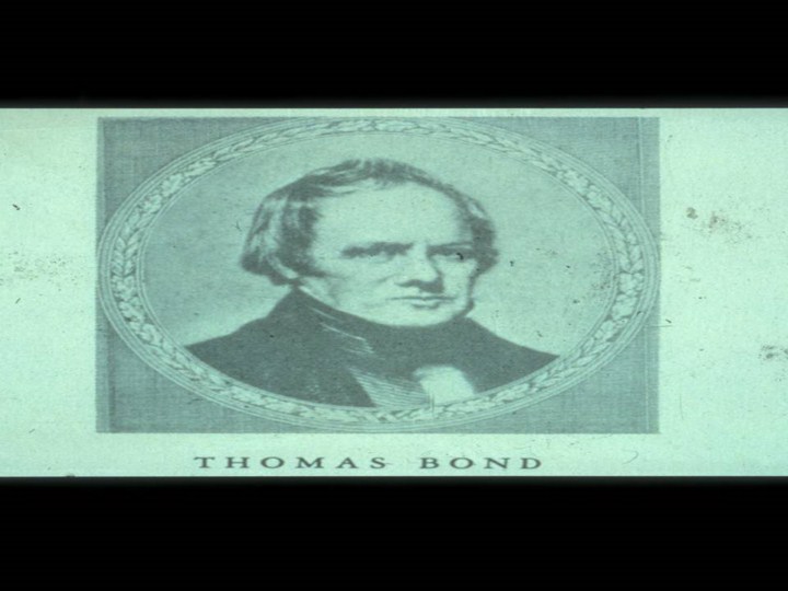 The first major step in organizing colonial medicine on a large scale had been taken in 1751‑52 when Dr. Thomas Bond, with the aid and encouragement of Benjamin Franklin, founded the first "modern" hospital in the colonies, the Pennsylvania Hospital, in Philadelphia. |