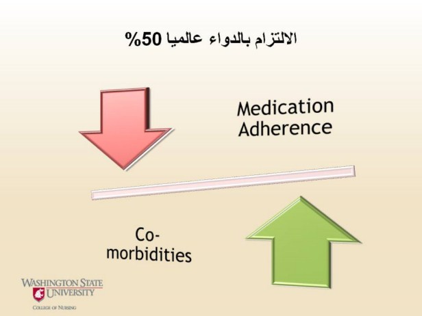| ي عام 2003 اقرت منظمة الصحة العالمية بأن نسبة التزام المرضى عالميا بتناول الدواء بلغت 50% وان مستويات الالتزام قد تدنت بتزايد نسبة انتشار الامراض. الالتزام بتناول الدواء هو مشارك مهم في التعامل ومعالجة المرض المزمن. عدم الالتزام بتناول الدواء هو سبب مهم تزايد تكاليف الرعاية الصحية, انتشار المرض, والموت المبكر. |