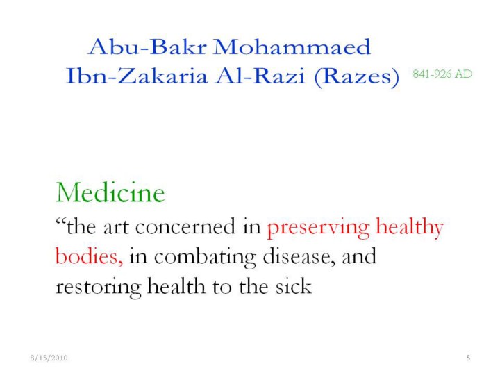 Some of the earliest roots of global health and prevention are from OIC countries. This is from one of the most famous Persian Muslim physicians, who puts preserving healthy bodies first, as we of the NIH-OIC team do also. In addition, the science during this period was much more advanced then Europe. |