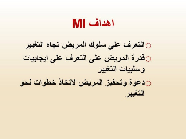 المرجع: Saha, P. Motivational Intervention: Approaching Behavior Change. Available athttp://www.google.com/search?q=motivational+interviewing&hl=en&prmd=ibv&ei= |