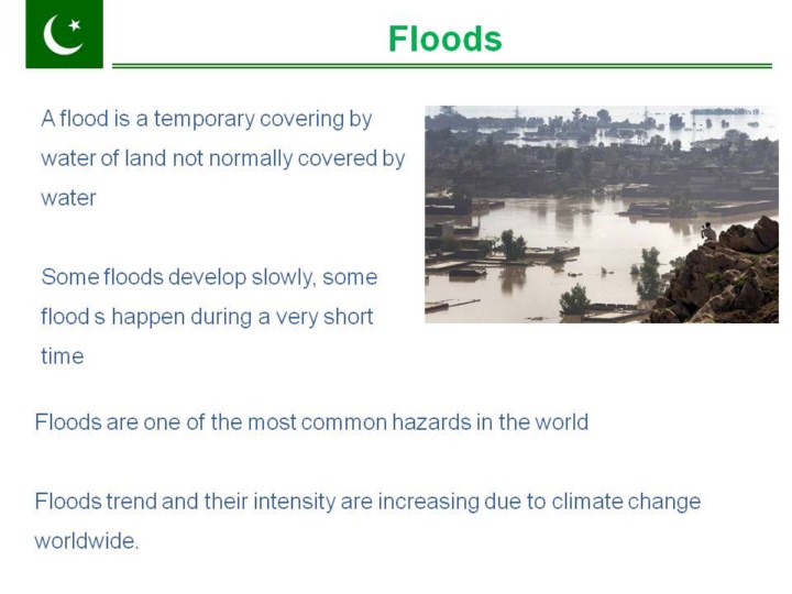 The word "flood" comes from the Old English flod, a word common to Germanic languages. Compare German Flut, Dutch vloed from the same root as is seen in flow, float; also compare with Latin fluctus, flumen. (Wikipedia) |