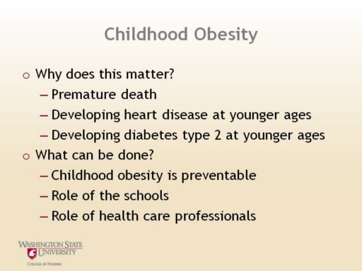 “Overweight and obesity, as well as related noncommunicable diseases, are largely preventable. It is recognized that prevention is the most feasible option for curbing the childhood obesity epidemic since current treatment practices are largely aimed at bringing the problem under control rather than effecting a cure. The goal in fighting the childhood obesity epidemic is to achieve an energy balance which can be maintained throughout the individual's life-span.” World Health Organization, Retrieved from http://www.who.int/dietphysicalactivity/childhood_what_can_be_done/en/index.html