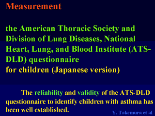 Measurement The questionnaire used in this study was the Japanese version of the American Thoracic Society and Division of Lung Diseases, National Heart, Lung, and Blood Institute questionnaire, or ATS-DLD questionnaire, for children. The questionnaire has been adopted by the former Japanese Ministry of the Environment, or the Japan Environment Agency. We also added supplementary questions on parental history of asthma and feeding patterns from the age of zero to three months. The reliability and validity of the ATS-DLD questionnaire to identify children with asthma has been well established. |