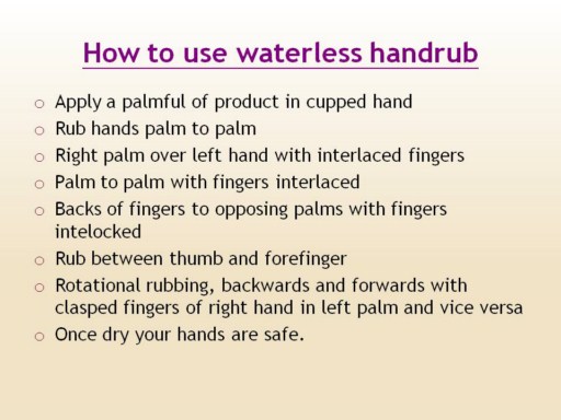 Links to drawings and directions for this procedure - How to use waterless handrub |