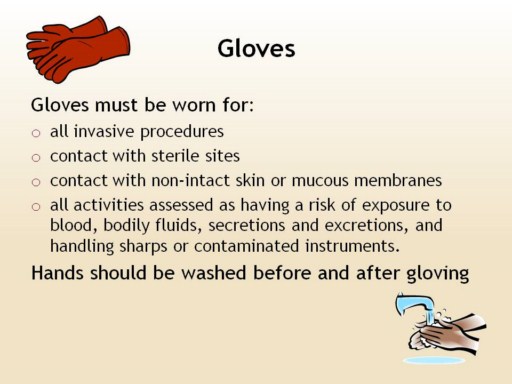1. Gloves are now an everyday part of clinical practice. There are two main indicators for wearing gloves in the clinical setting: • to protect the hands from contamination with organic matter and micro-organisms; • to reduce the risk of transmitting microorganisms to both patients and staff. 2. Even if a student is required to wear gloves this does not replace the need for cleaning one’s hands. 3. Gloves must be worn for: - all invasive procedures; - contact with sterile sites; - contact with non-intact skin or mucous membranes; - all activities assessed as having a risk of exposure to blood, bodily fluids, secretions and excretions, and handling sharps or contaminated instruments. 4. Gloves should be worn only once and should be put on immediately before the care activity, removed immediately afterwards and changed between patients and pisodes of care; 5. Gloves must be disposed of as clinical waste and hands must be decontaminated by washing appropriately. |