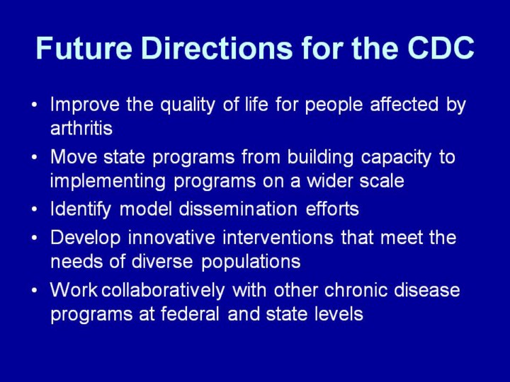 Future Directions for the CDS With funded states and other partners, CDC aims to