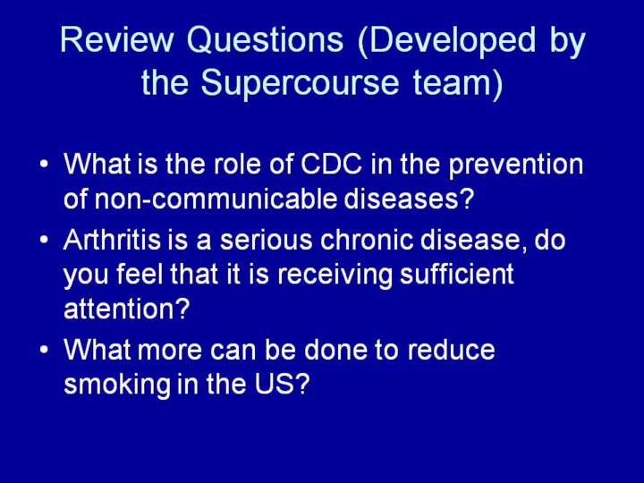 We would appreciate your help with evaluating the content of this course. Please send completed Evaluation Form to super1@pitt.edu with the subject "chronic disease supercourse evaluation"