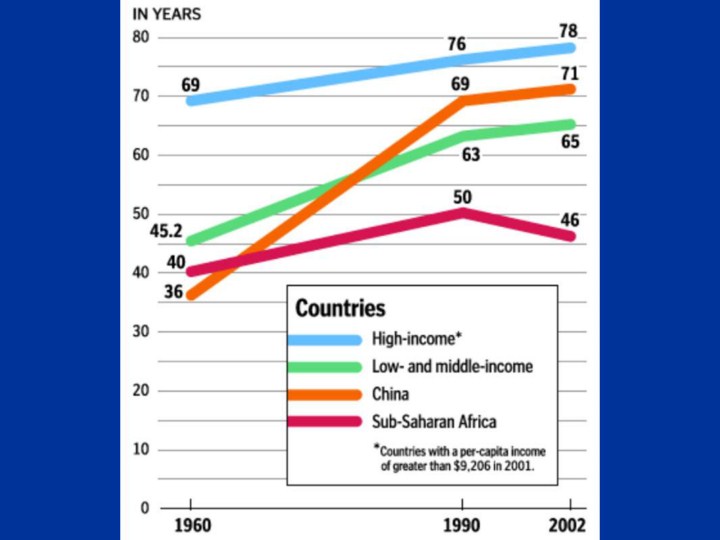 Dans les 100 dernières années, l'espérance de vie a été à la hausse dans la plupart des pays en voie de développement et des pays développés. Nous sommes en meilleure santé aujourd'hui que nous n’avons jamais été dans l'histoire de l'humanité. Cette amélioration de l'espérance de vie a été atteinte grâce à l'amélioration de la prévention, du partage de l'information et de la santé mondiale.