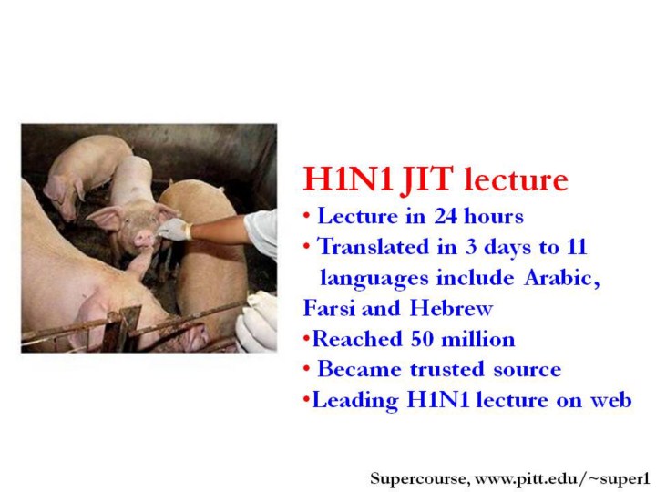 Our H1N1 lecture was a remarkable achievement as within 3 days we were able to teach 50 million people in 11 languages about H1N1.