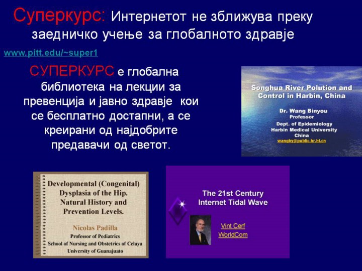 Вие може да се придружите кон оваа глобална мрежа и да научите повеќе посетувајќи го Суперкурс-от преку: www.pitt.edu/~super1