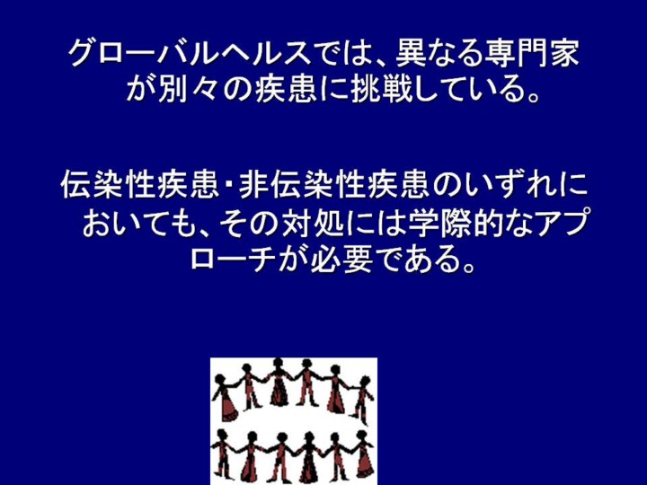 さまざまな分野の専門家が協力したことにより天然痘を撲滅しました。もし天然痘のような難病でも撲滅可能であれば、同様の協力行動によりこうした病気やグローバルヘルスの問題は解決できるでしょう。