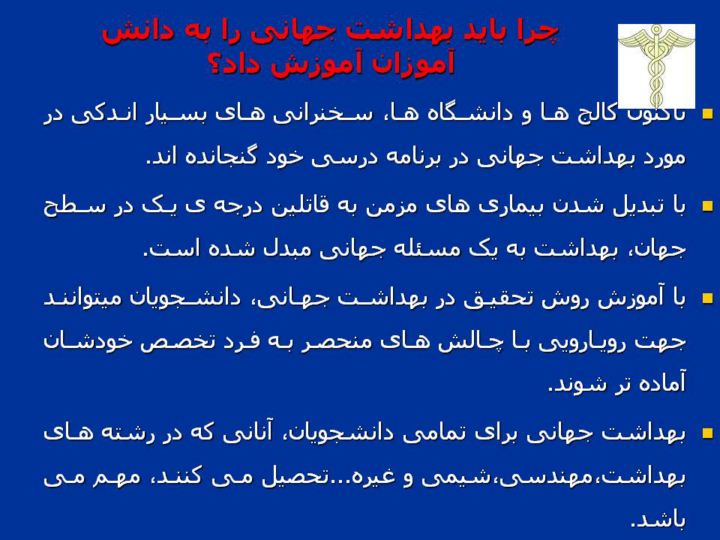 رشته های مختلف در مورد بهداشت جهانی آموزش داد.