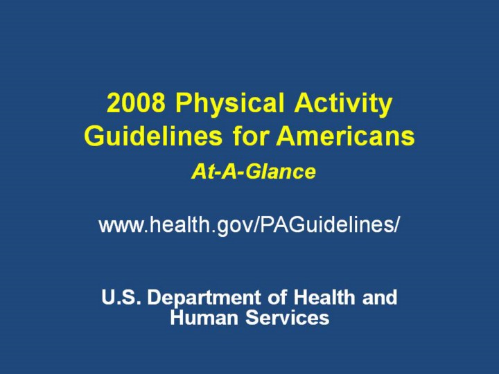 Today I am here to introduce the Physical Activity Guidelines for Americans to you that the U.S. Department of Health and Human Services developed and released in October 2008.