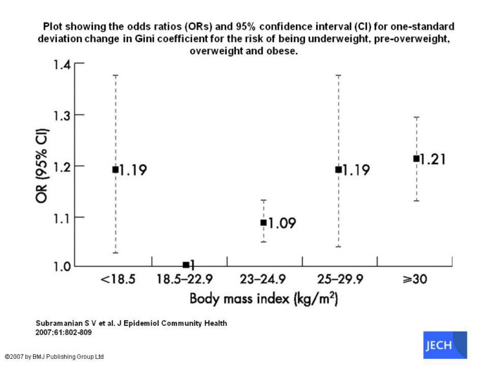 deviation change in Gini coefficient for the risk of being underweight, pre-overweight,