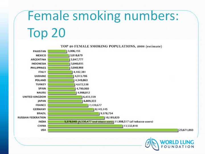 Shafey O, Ericksen M, Ross H, Mackay J. The Tobacco Atlas, 3rd Edition, 2009. American Cancer Society, World Lung Foundation. Atlanta, Georgia, USA