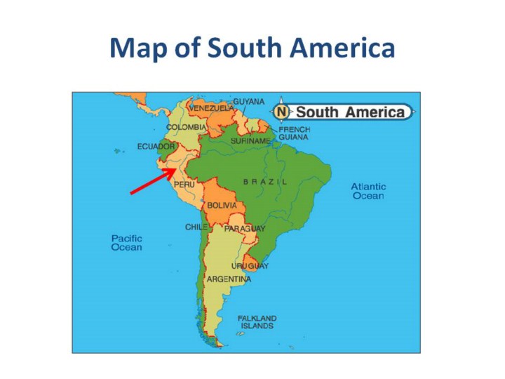Peru is located in the Northern part of South America on the coast of the South Pacific Ocean; Peru is bordered by Ecuador, Colombia, Brazil, and Chile. |
