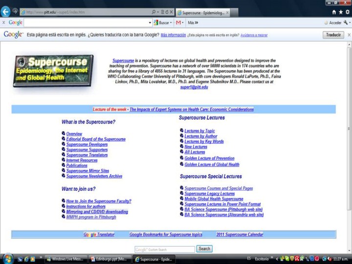 Hay varias útiles herramientas en la página web del Supercurso: cursos completos, páginas especiales, obtención de las diapositivas originales de las presentación, paginas de presentaciones de premios Nobel, presentaciones de desastres, presentaciones Justo en Tiempo (En tiempo real). |