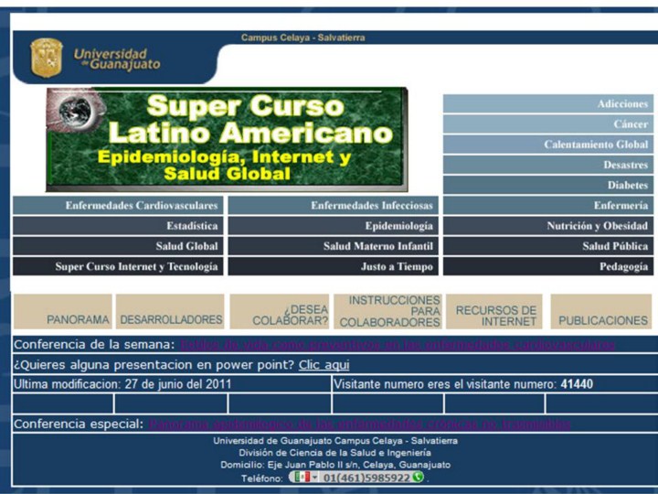 Está basado en la División de Ciencias de la Salud e Ingenierías del Campus Celaya Salvatierra de la Universidad de Guanajuato en México. Tiene áreas como enfermedades cardiovasculares, enfermedades infecciosas, salud pública, epidemiología, enfermería, salud global, cáncer, entre otras. |