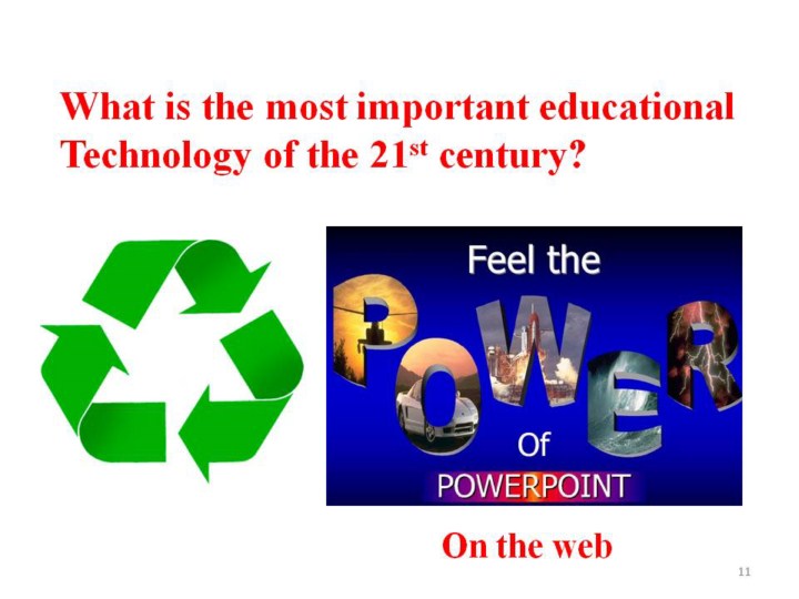 Thirty years ago teachers would use chalkboard, and at the end of class, erasing the board, effectively “killing” the lecture. Now at the end of class with PowerPoint on the web the lecture becomes immortalized and can be cycled to improve the teaching of educators world wide |