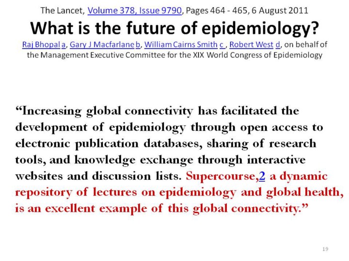 Recently in the Lancet the Supercouse was the only named project identified as the future of epidemiology. The Lancet, Volume