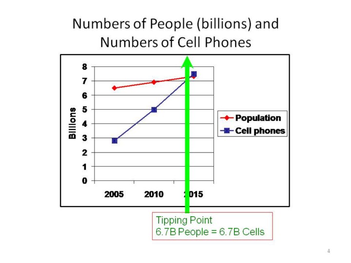 What is most remarkable is that in 2 years the number of cell phones will equal the number of people on earth. There has never been a technology taken up so rapidly.