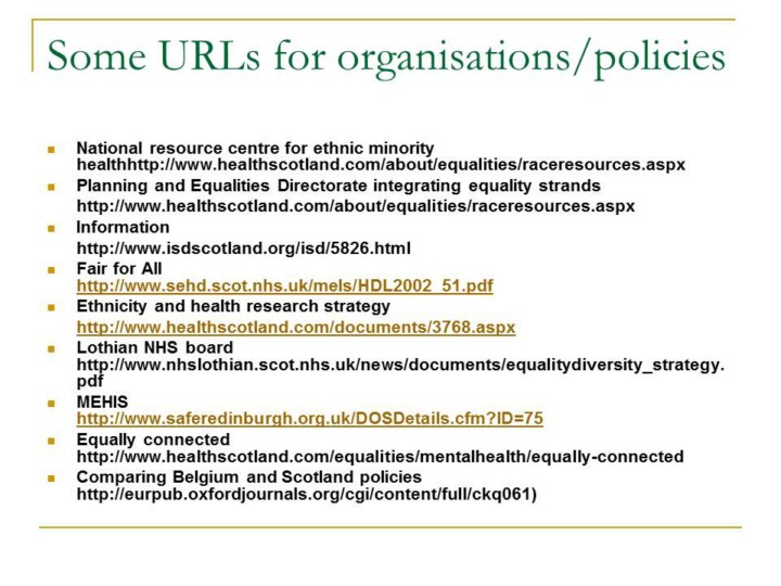 Ethnicity and health research strategy http://www.healthscotland.com/documents/3768.aspx