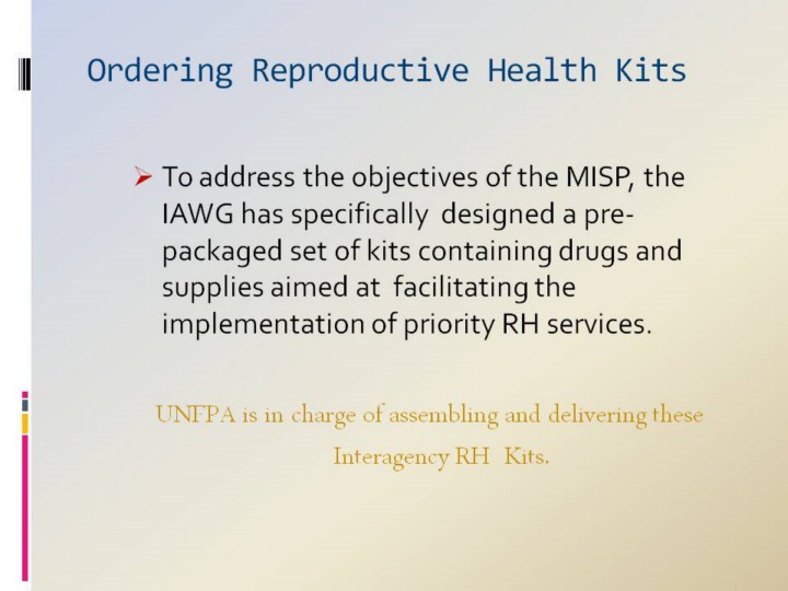 UNFPA is in charge of assembling and delivering these Interagency RH