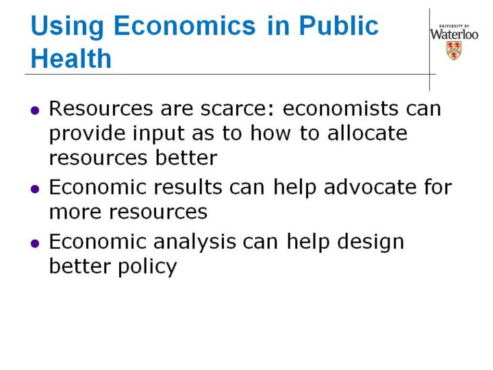 Our demand for health resources is great – but resources are finite. Economic methods can help us allocate the resources we have better – and help advocate for more resources. Typically Ministers of Health are not the most powerful Ministers – so using economics language to talk to Ministers of Finance or of Planning is important |